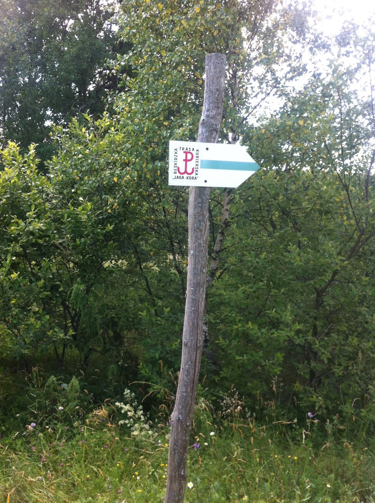 Po wyjeździe z lasu,ponownie trafiamy na oznakowanie trasy.